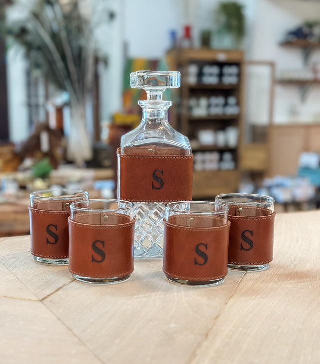 Leather Wrapped Decanter & Whiskey Glass Set - QTan Leather
